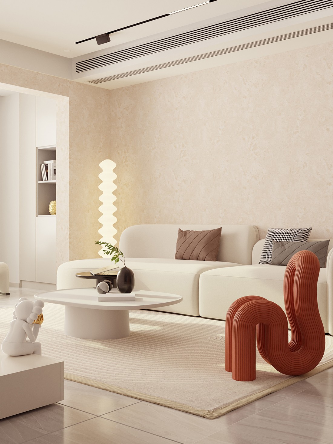 极简而又不乏轻奢,沉稳而又个性十足。米色是介乎于驼色和白色之间的一种都市色彩,它具有驼色的优雅大气,以及白色的纯净浪漫。米色的家装总是给予无尽的包容,容易营造温暖平和的氛围,既清爽纯净,又优雅温暖。